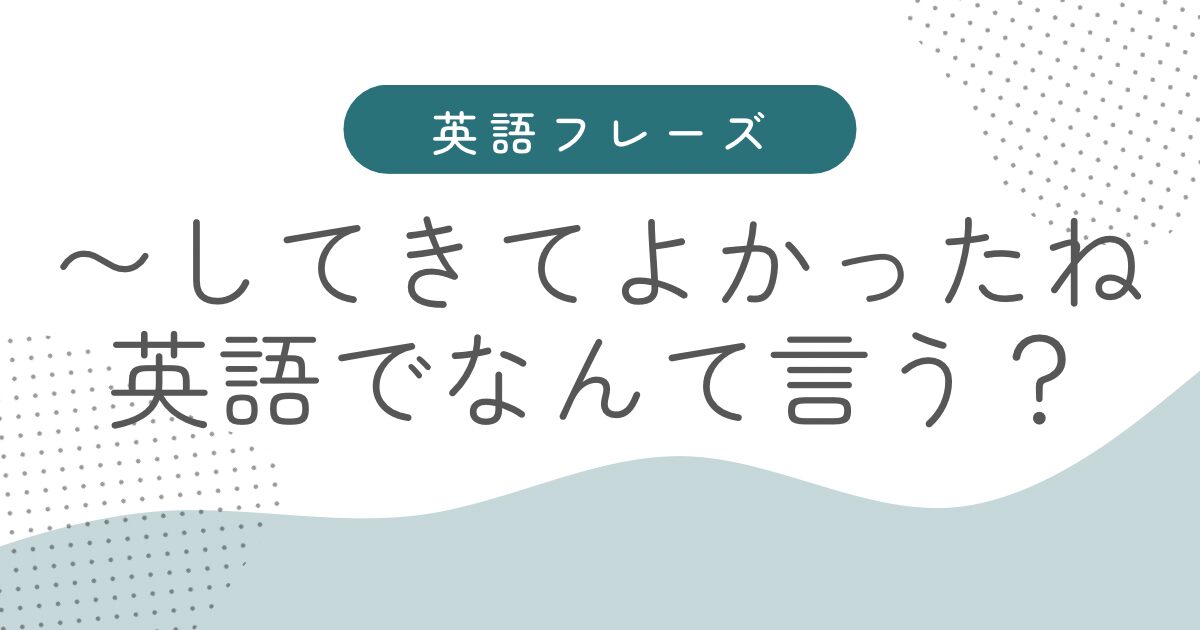 そこで今回は、英語で伝える「〜してきてよかったね」についてまとめてみました。